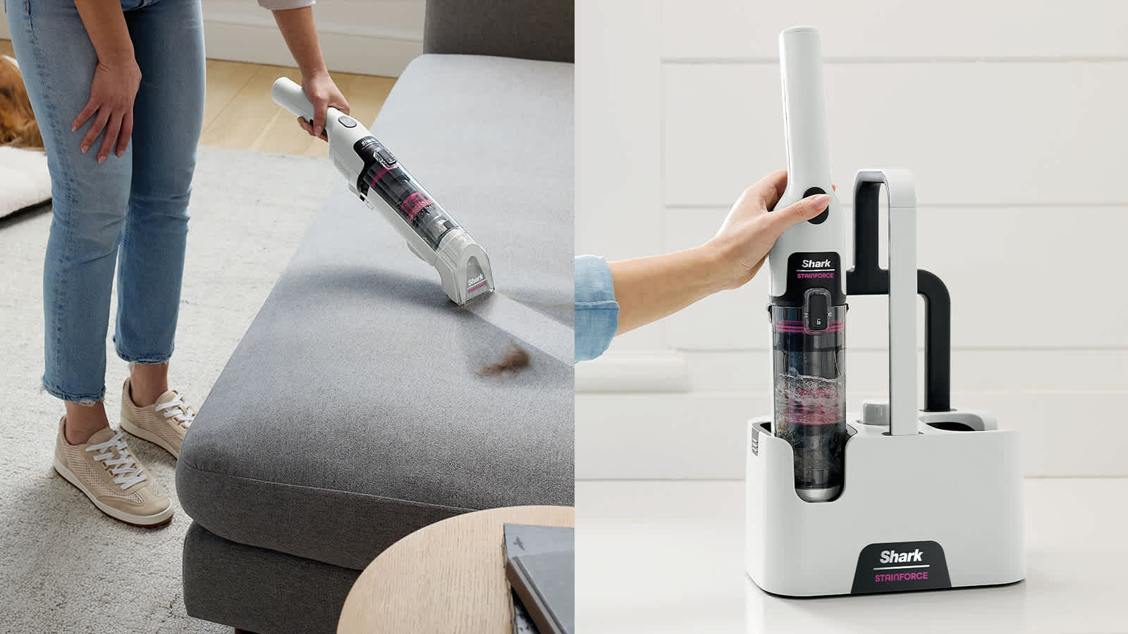 Spild og pletter kan ske på et øjeblik – rengør dem lige så hurtigt med Shark StainForce.